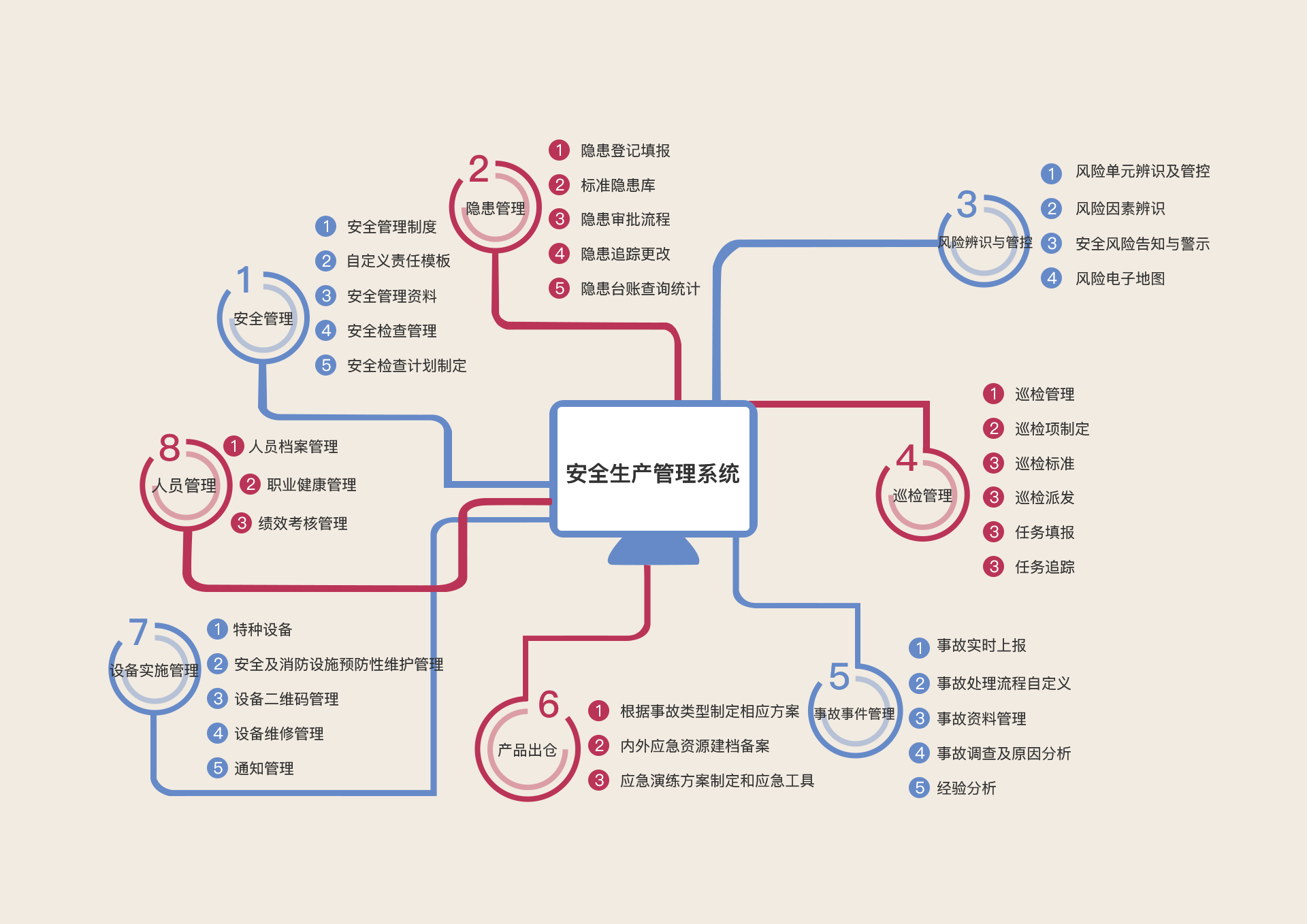 隱患管理包括:隱患登記填報、標準隱患庫、隱患審批流程、隱患追蹤更改、隱患臺賬查詢等